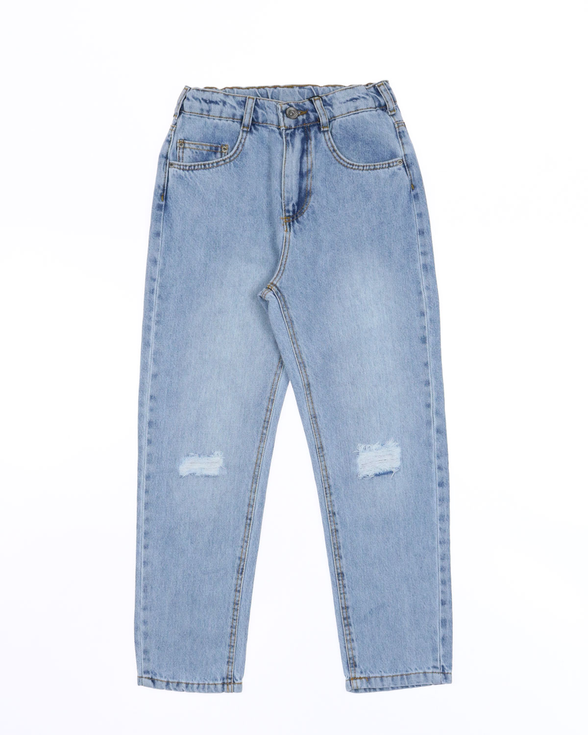 Модные рваные джинсы для девочки. Плотная джинсовая ткань делает их актуальными в любое время года и позволяет носить каждый день. Комфортная посадка не сковывает движения, при этом не делает джинсы слишком объёмными. Удобная функциональная резинка в поясе позволяет регулировать объем на талии. Ребенок может сочетать джинсы с любым верхом и наслаждаться разными стилями, в зависимости от настроения.