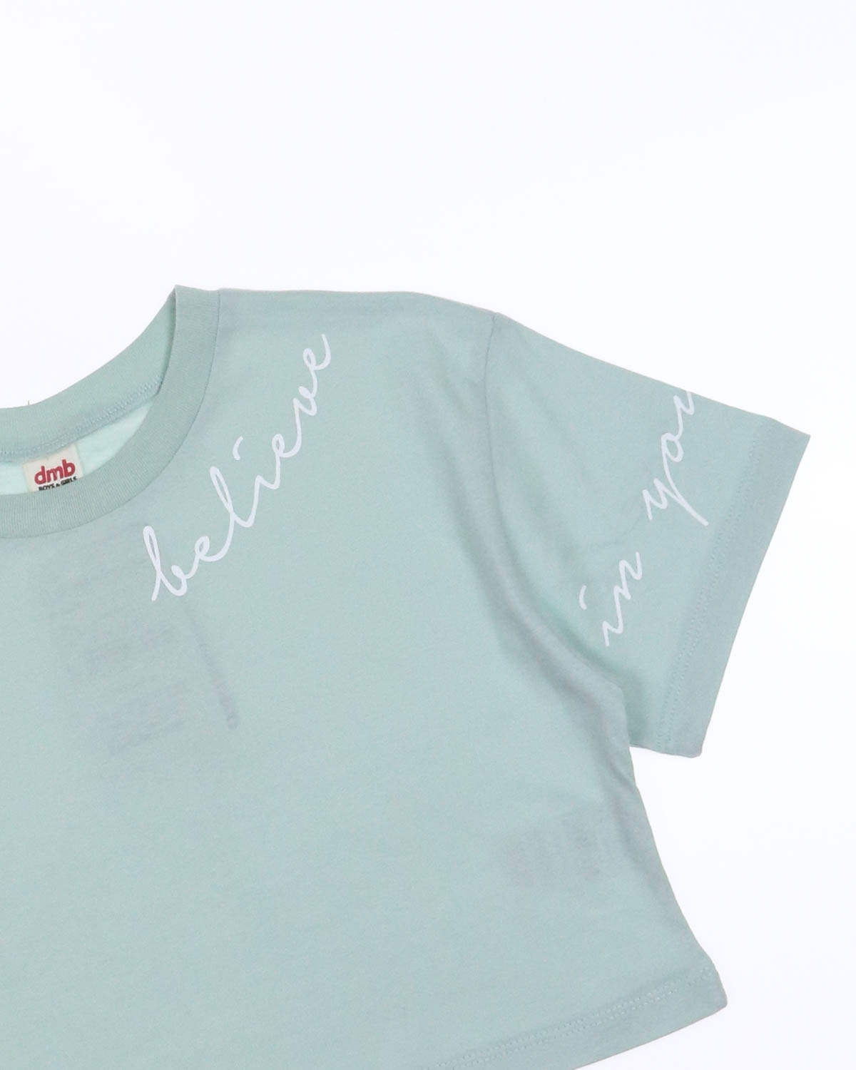 Укороченная футболка DMB для девочки оптом. Модель свободного кроя с лаконичным принтом.