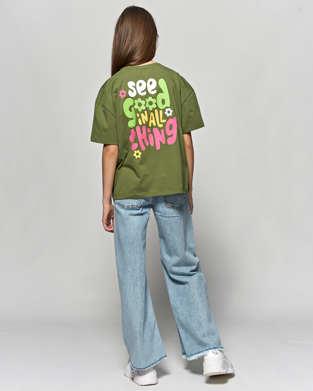 Футболка для девочки оптом Cegisa. Модель свободного кроя с коротким рукавом, с двух сторон нанесен модный и стильный принт.