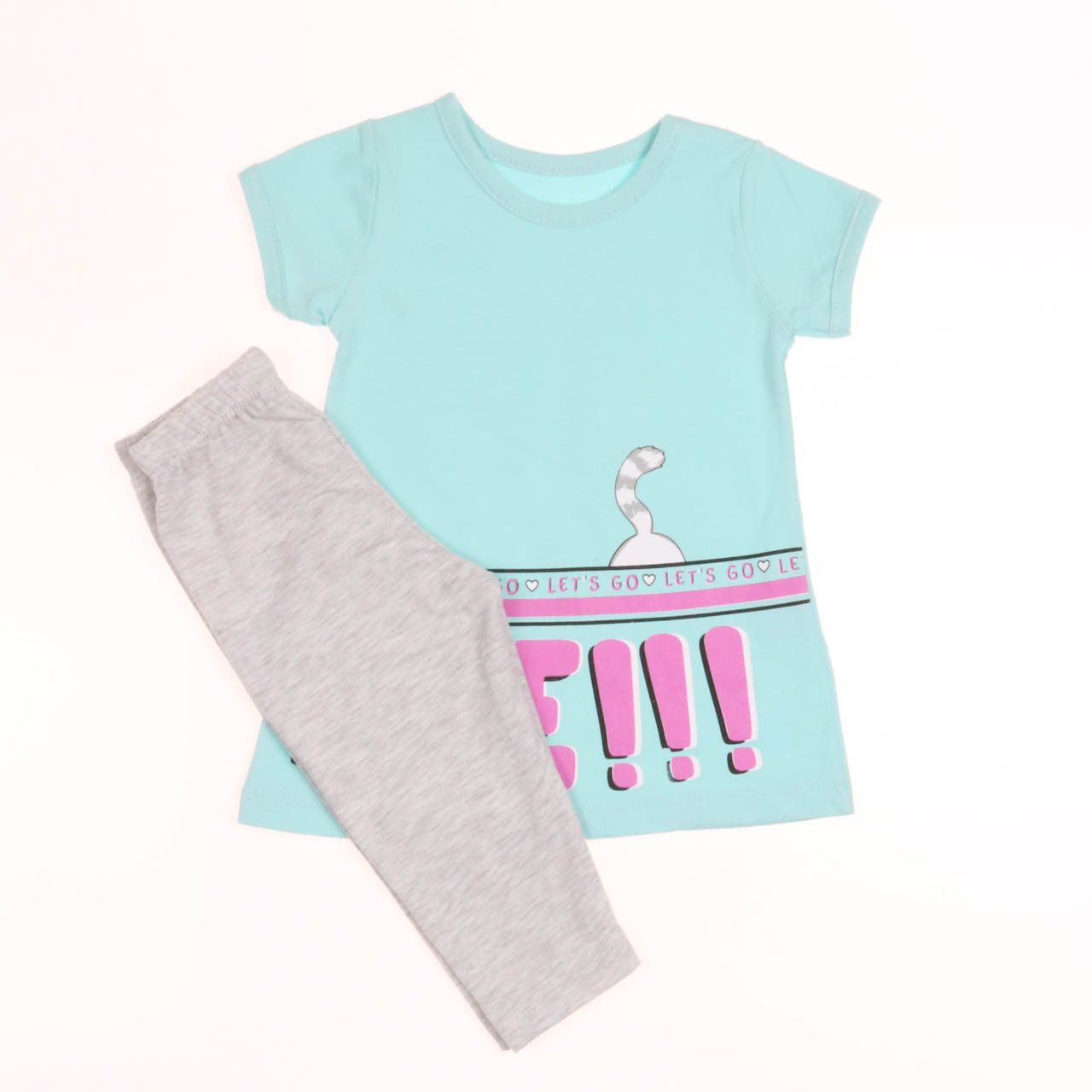 Удобный комплект для девочки от 3 до 6 лет  состоит из футболки и бридж. Футболка удлиненная из хлопкового трикотажа. Спереди футболка украшена красочным принтом. Бриджи с эластичным поясом выполнены из хлопкового трикотажа стрейч.