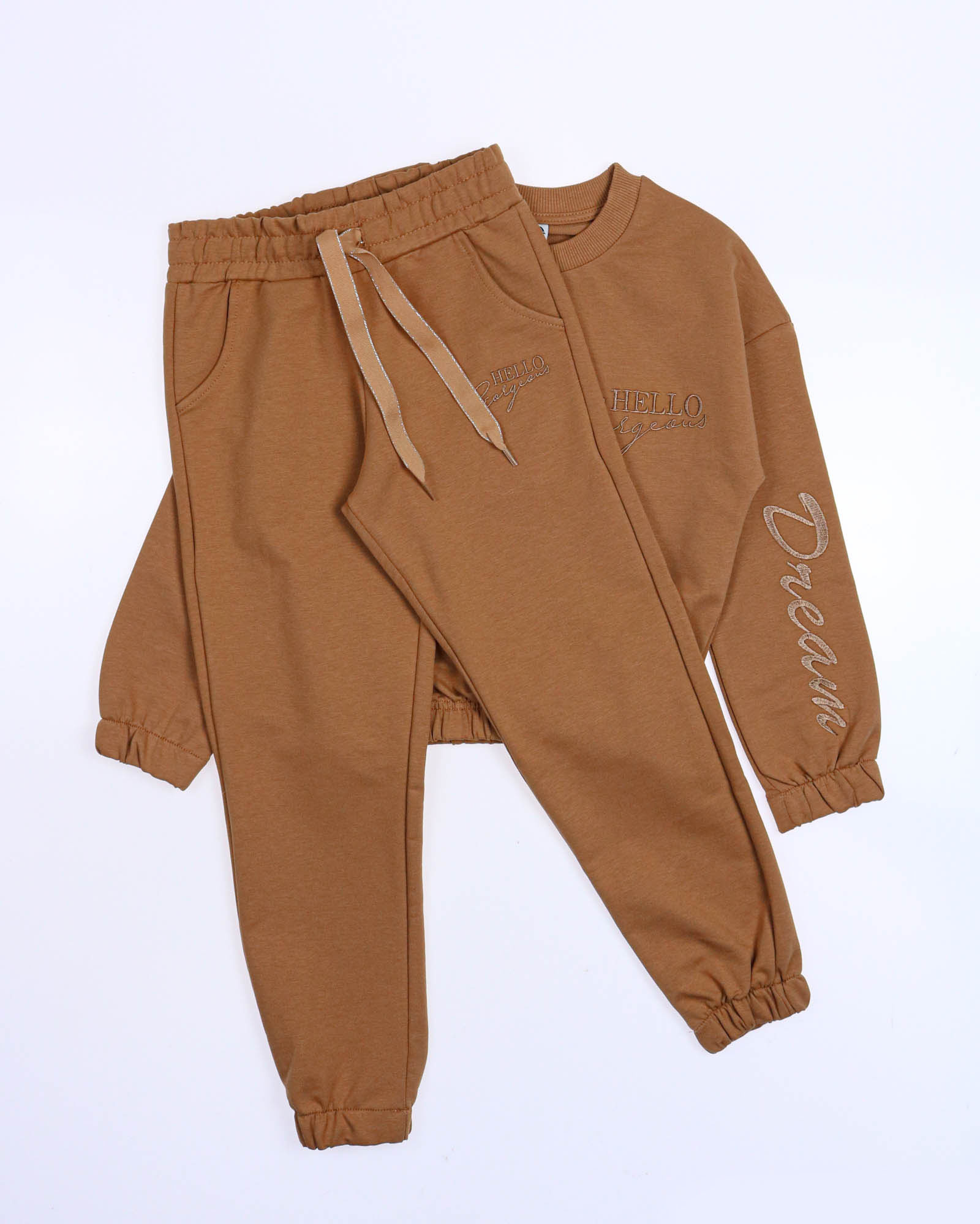 Стильный костюм создан для занятий спортом и прогулок.Свитшот со спущенной линией плеча, брюки с манжетами. Костюм выполнен из трикотожа футер 2х нитка.