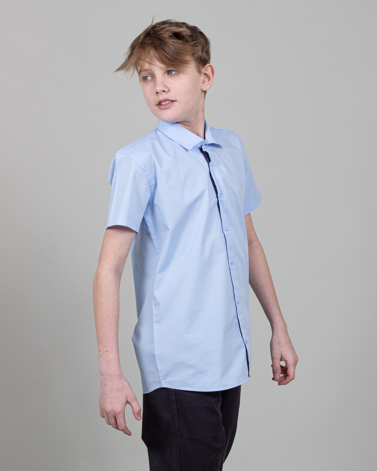 Рубашка Cegisa для мальчика  оптом. Модель приталенного кроя с короткими рукавами, классическим отложным воротничком, застегивается на кнопки.