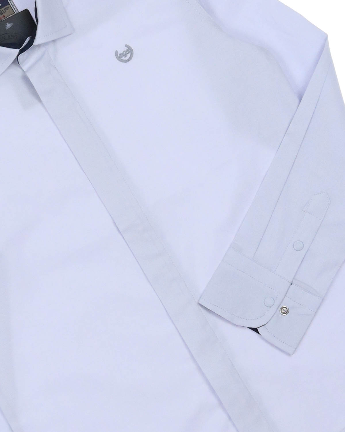 Рубашка прямого кроя с длинными рукавами, классическим отложным воротничком, застегивается на молнию и кнопку. На груди фирменная эмблема.