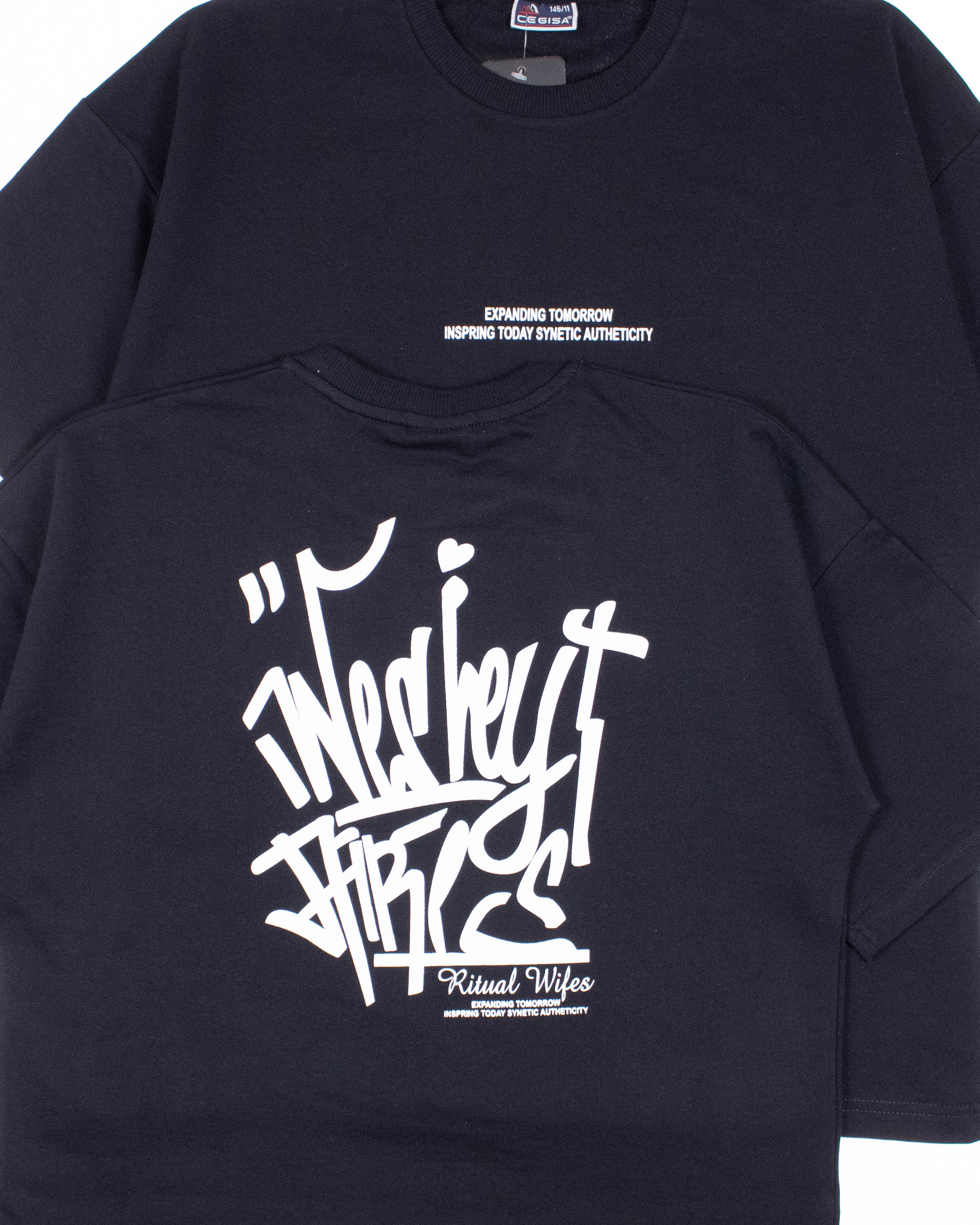 Однотонная футболка Cegisa для мальчика оптом. Футболка прямого кроя, линия плеча спущена, с двух сторон нанесен принт. Модель выполнена из 100% хлопкового трикотажа футер (петля).