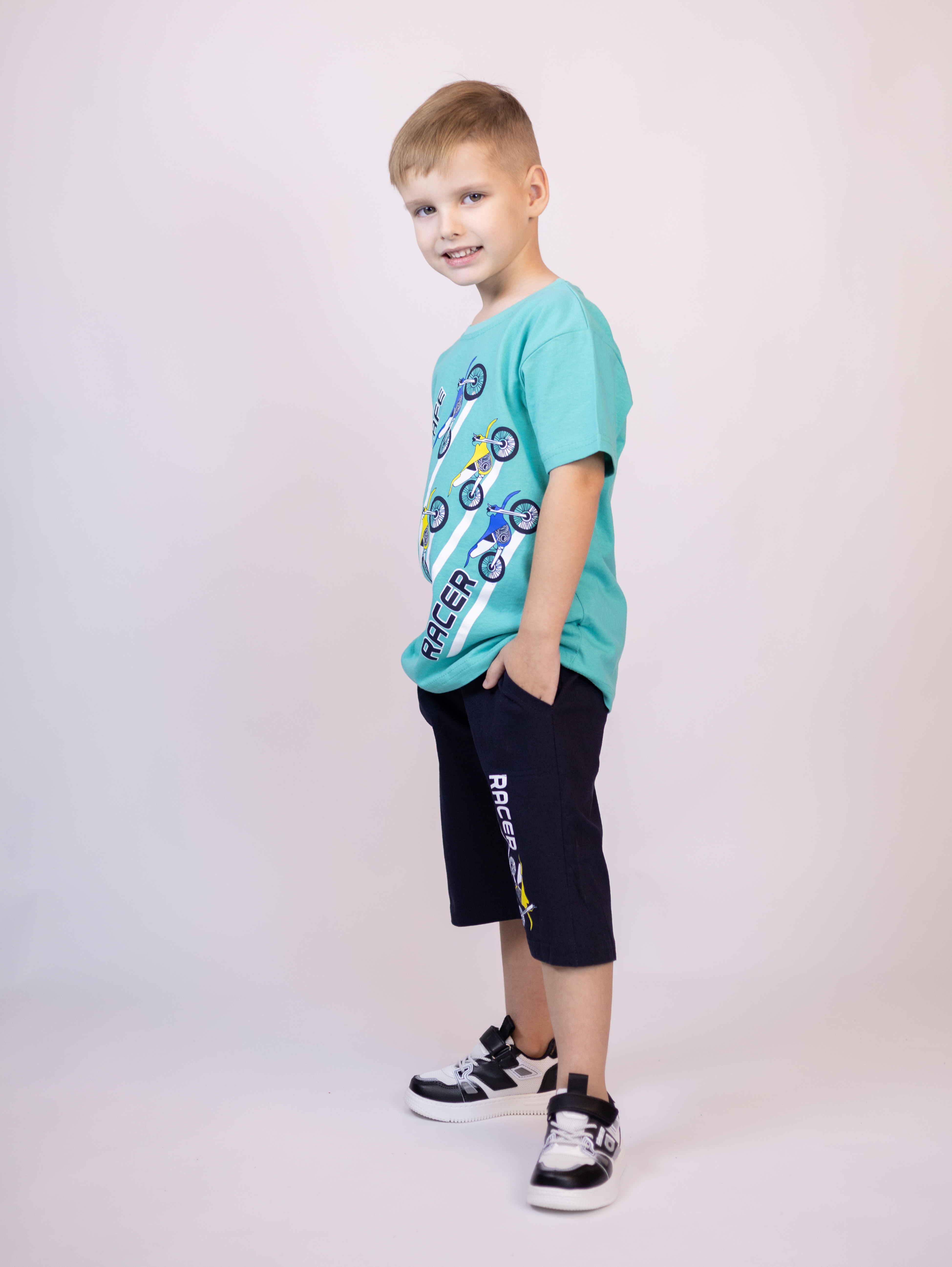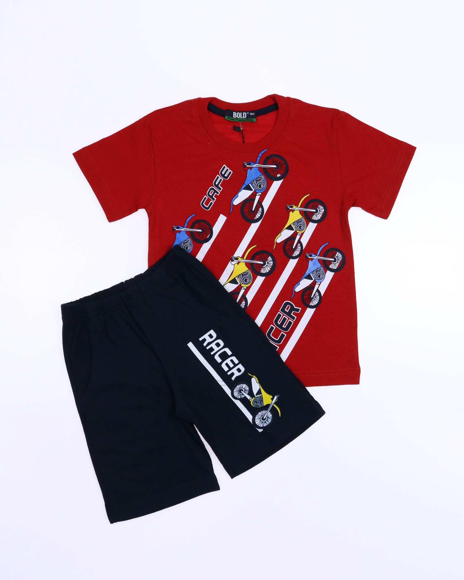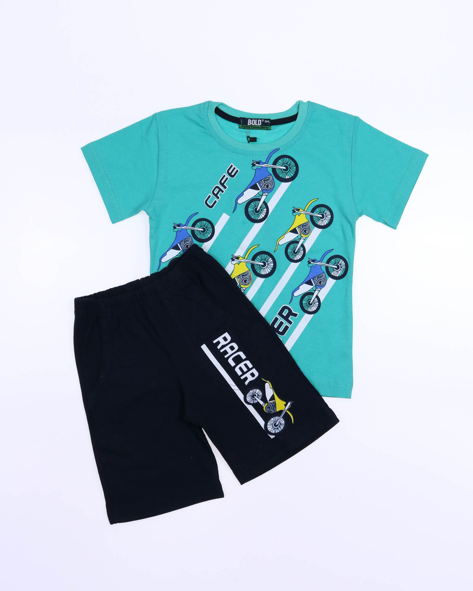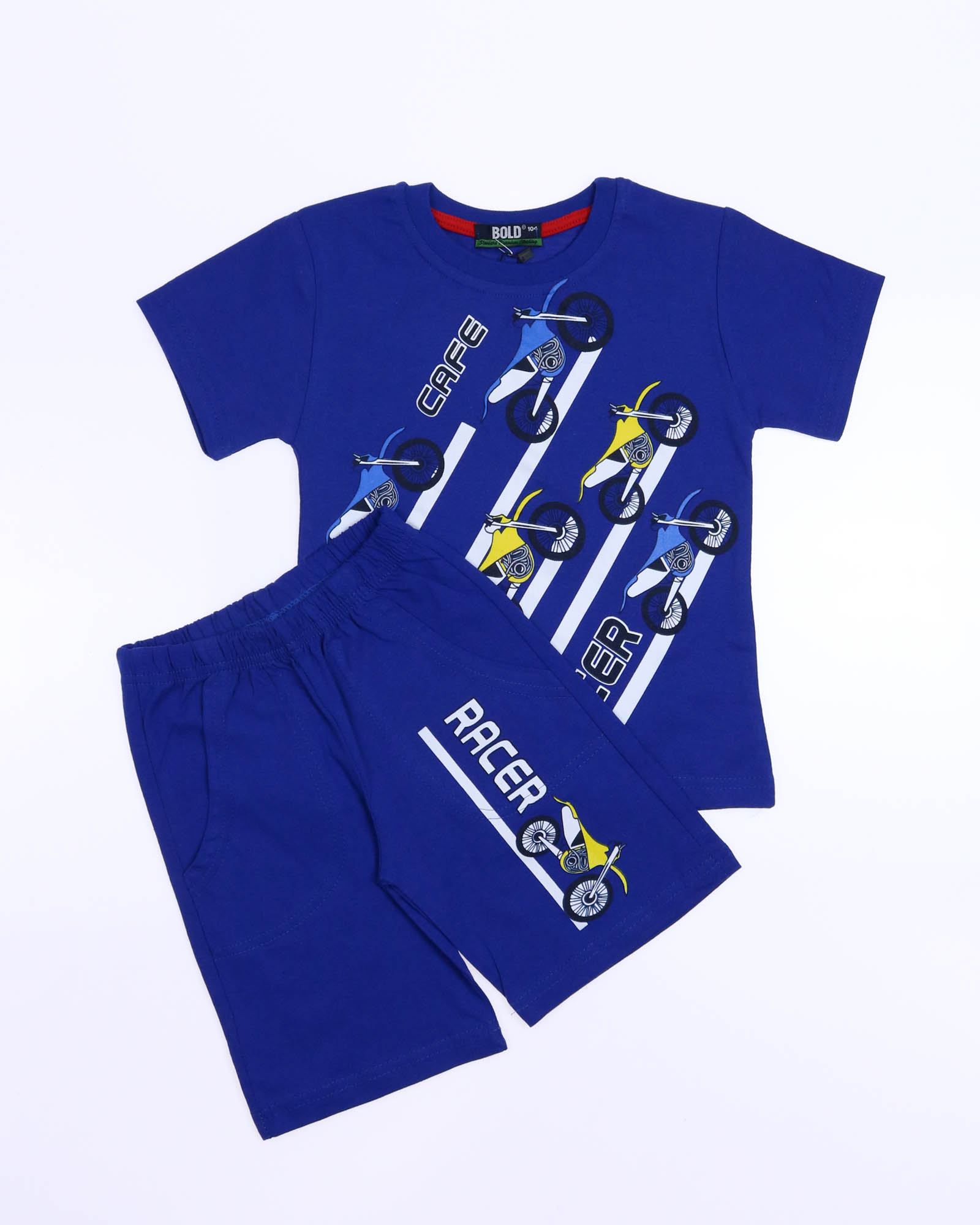 Трикожный костюм BOLD оптом из 100% хлопка с оригинальным, ярким принтом. Шорты трикотажные с карманами.