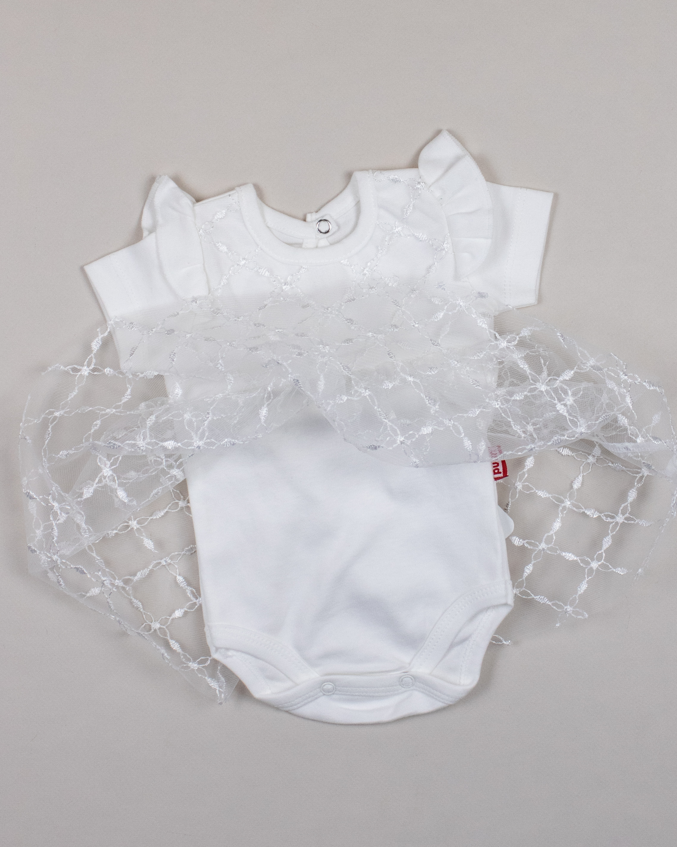Платье- боди PUAN  с коротким рукавом для малышки очень комфортно в использовании, не стесняет движений. Изготовлено из 100% хлопка. Застежка на спинке и снизу позволит в считанные секунды переодеть ребенка. Юбка выполнена из мягкого кружева.