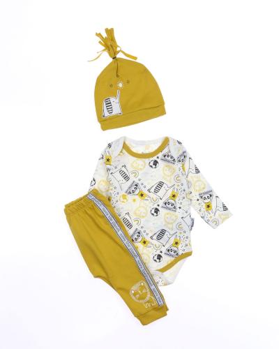 Детский боди с длинным рукавом, штанишки и шапочка - комплект, который подойдет малышам с самых первых дней жизни. Боди для новорожденного  очень удобен, снизу оснащён кнопками, благодаря которым маме будет удобно в любое время менять памперс  ребенку. Можно носить комплекты дома и на улице в летнее время года.