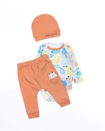 Детский боди с длинным рукавом, штанишки и шапочка - комплект, который подойдет малышам с самых первых дней жизни. Боди для новорожденного очень удобен, снизу оснащён кнопками, благодаря которым маме будет удобно в любое время менять памперс ребенку. Можно носить комплекты дома и на улице в летнее время года.