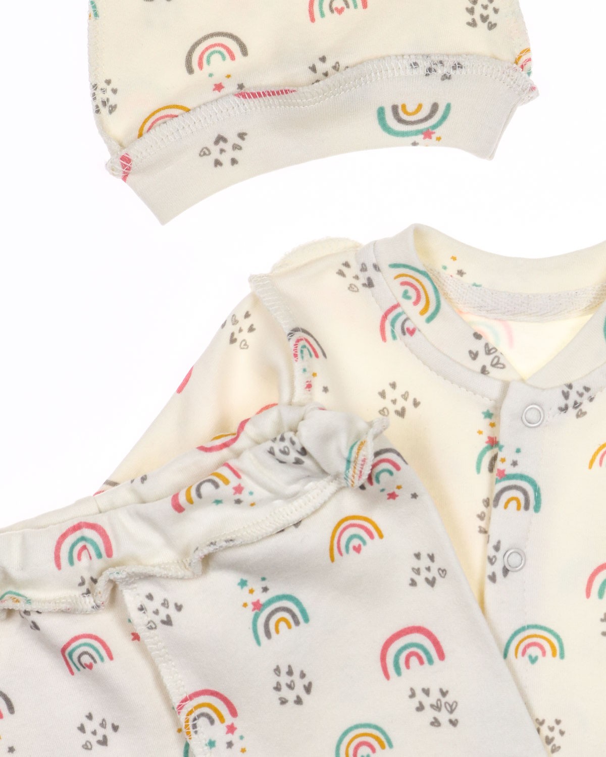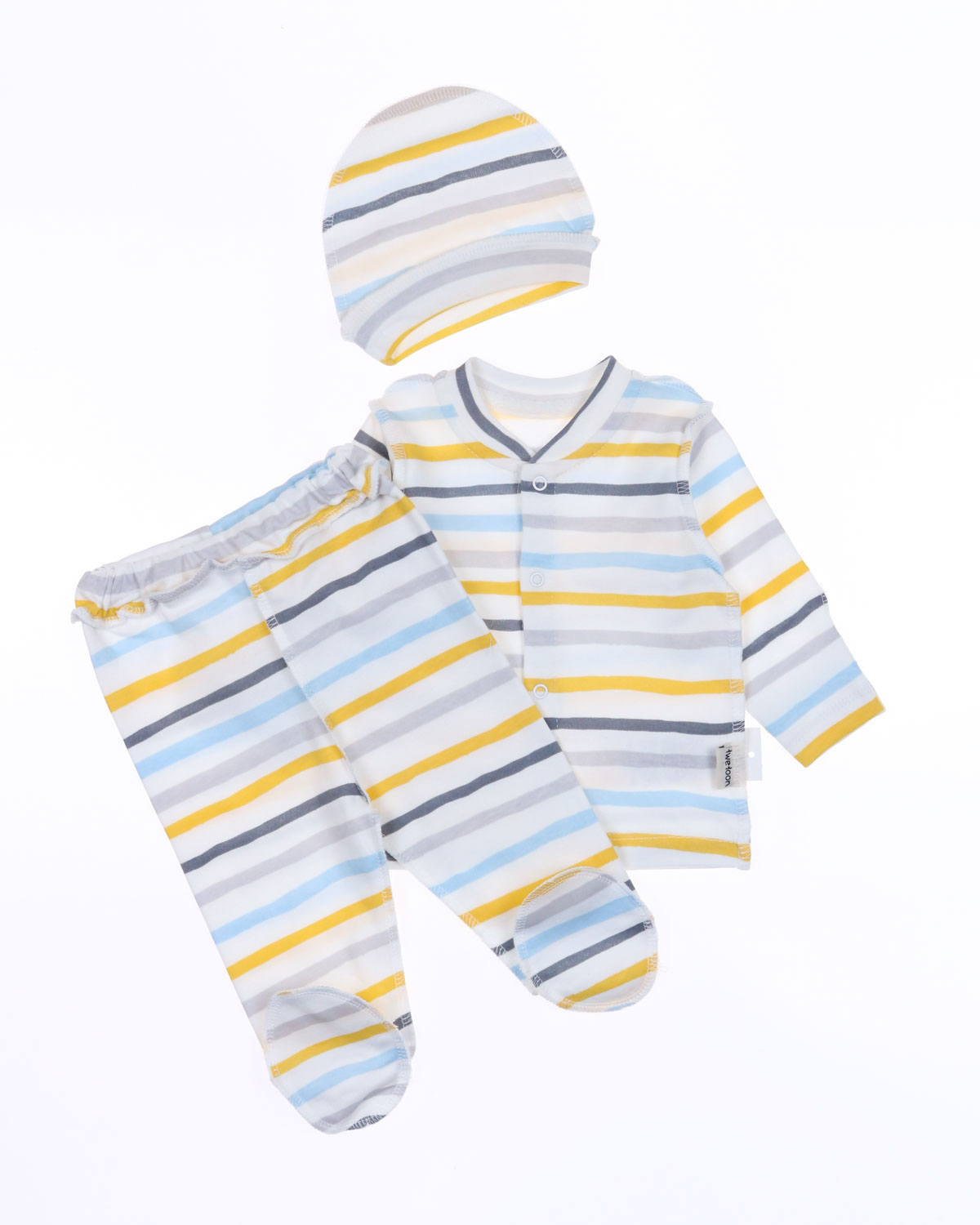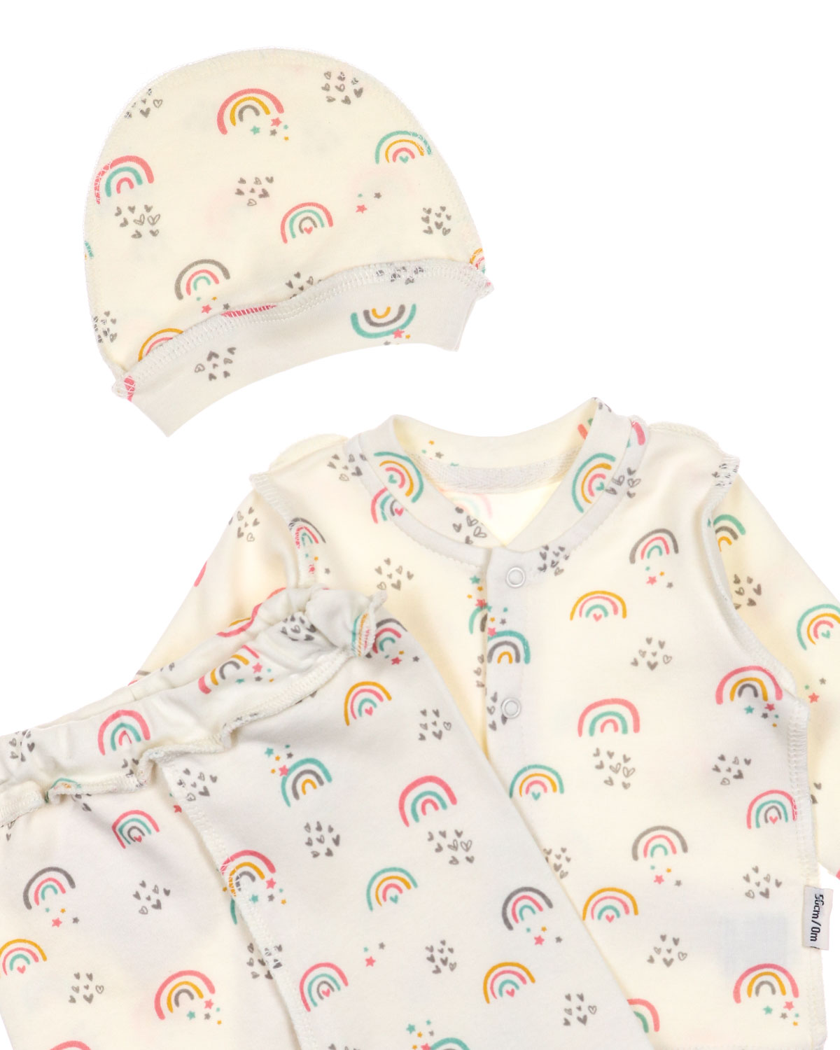 Костюм для новорожденных с антицарапками. Распашонка застегивается на кнопки, закрытые ручки-рукав трансформер, швы наружные. Штанишки с закрытыми ножками.