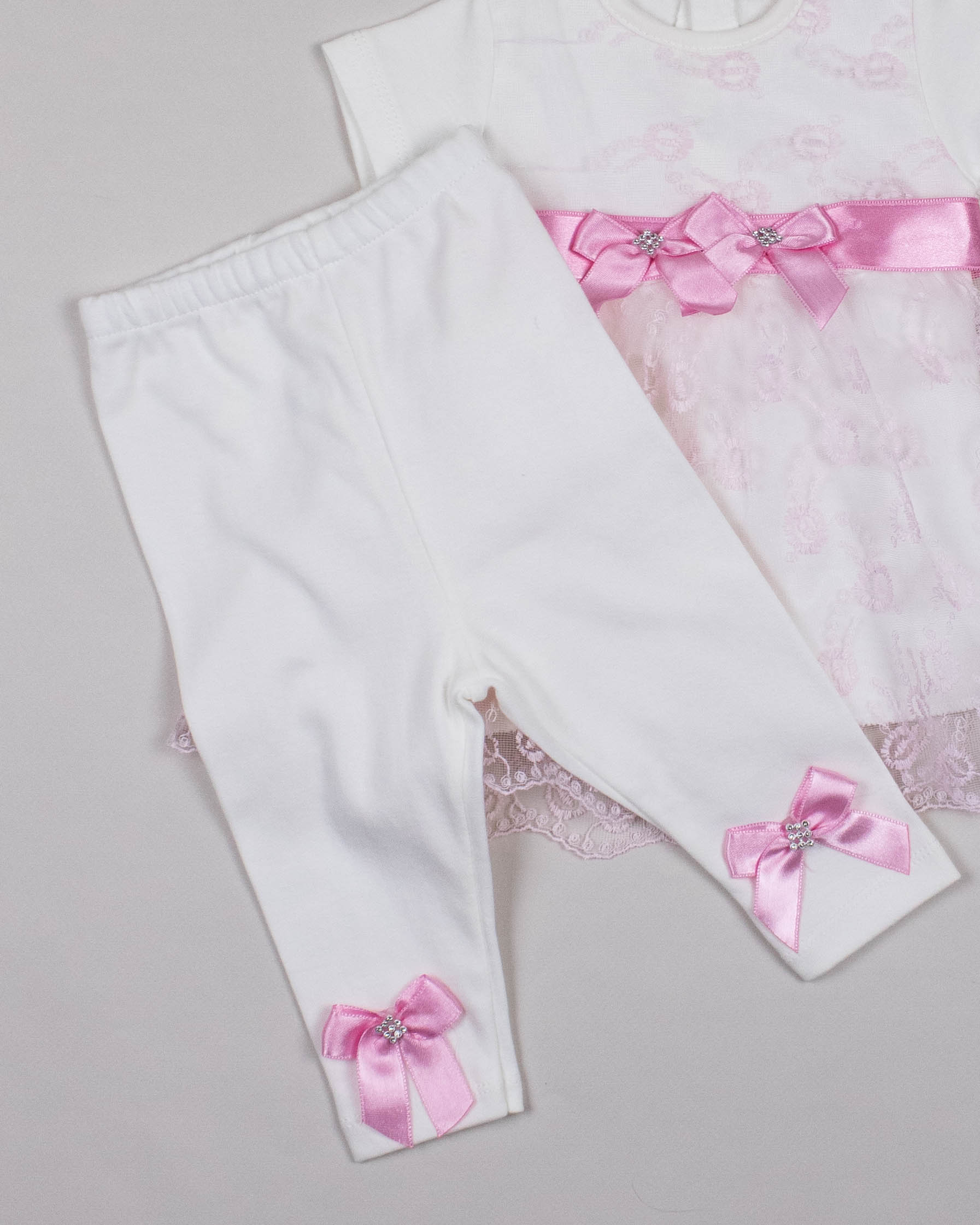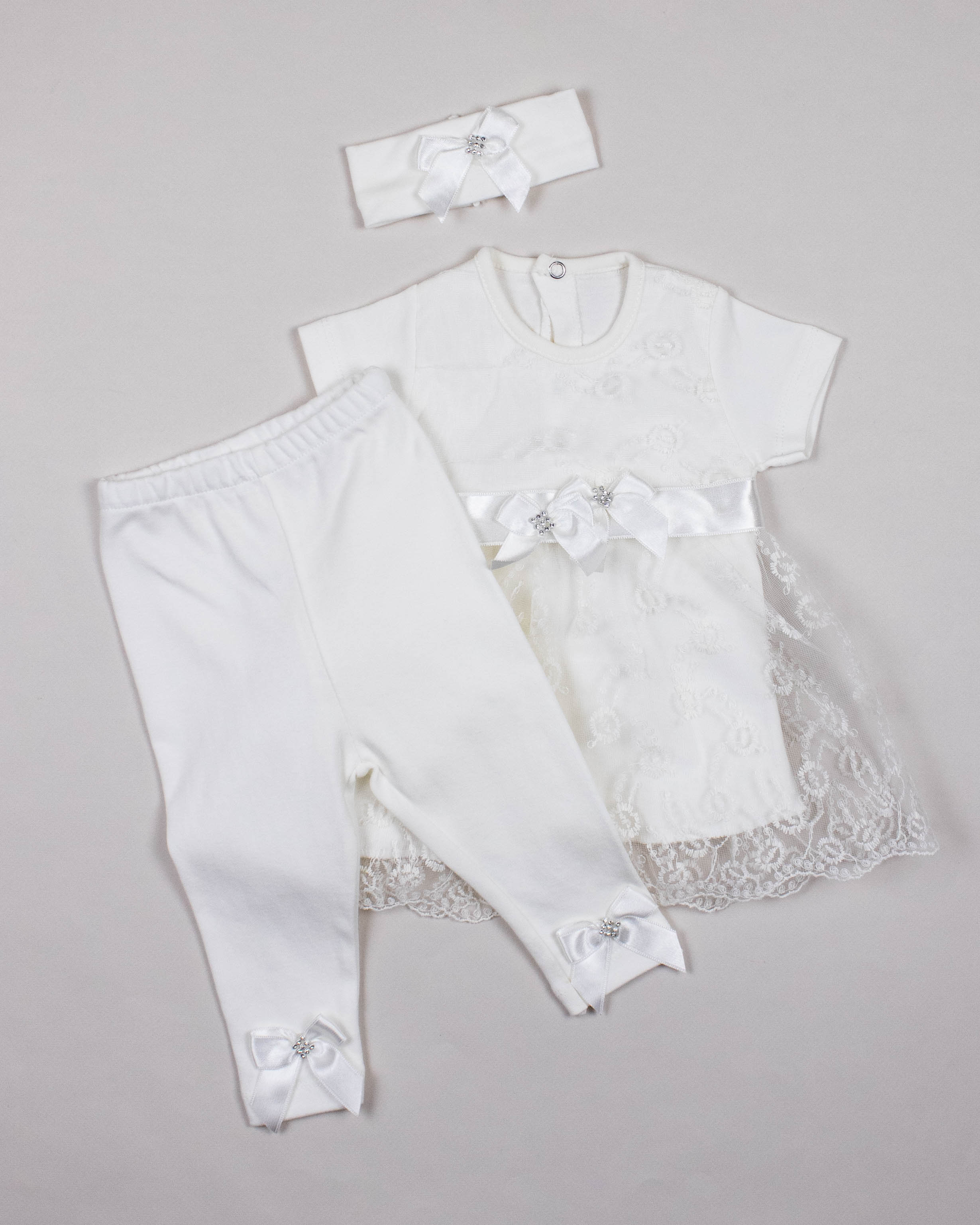 Комплект FINDIK оптом для новорожденного изготовлен из 100% хлопка с отделкой из сетки с вышивкой  и декором из страз.