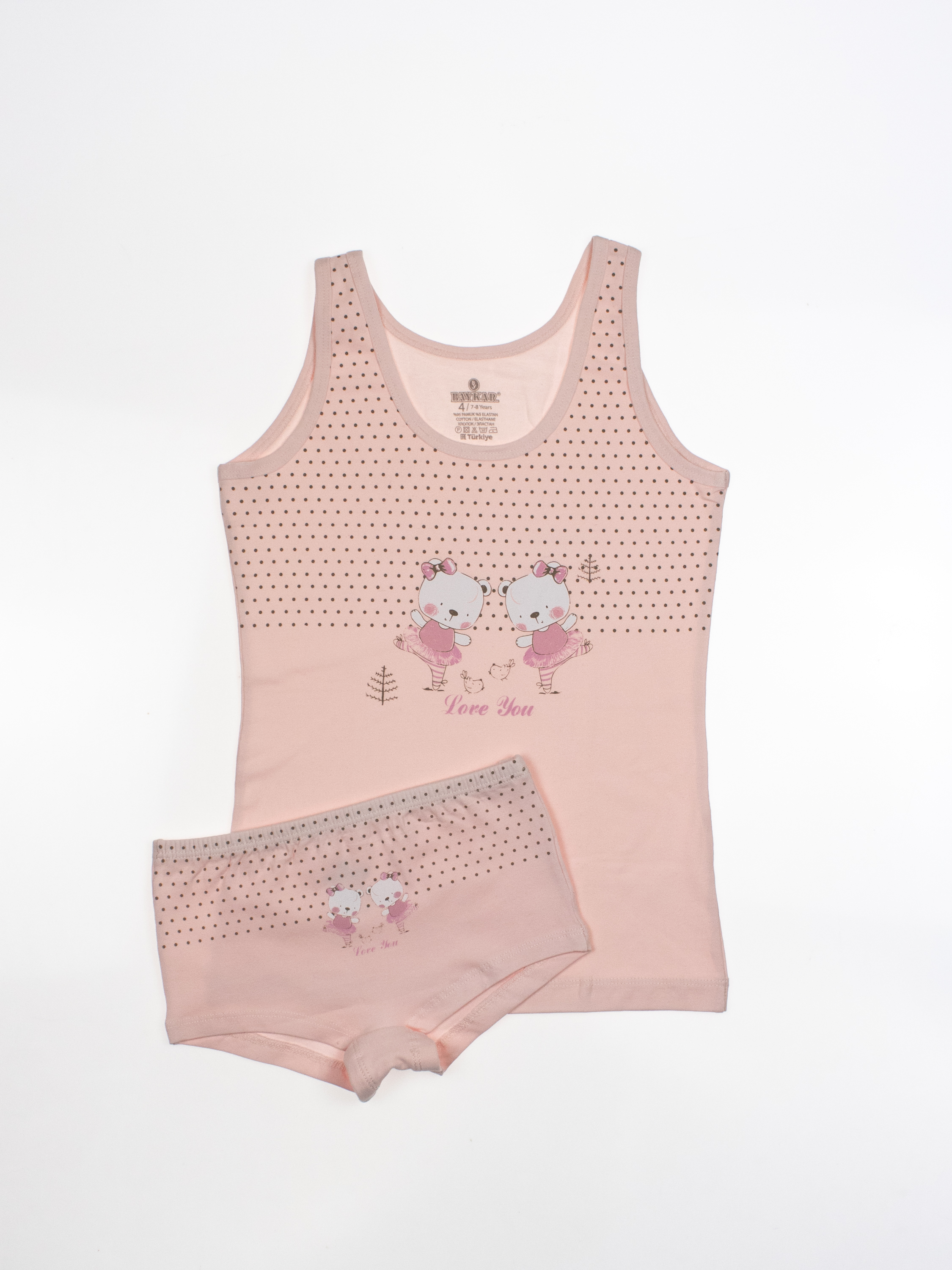 Костюм для девочки  от турецкого бренда BAYKAR - это гарантия комфорта, практичности и стильного дизайна. Изделия изготовлены из качественного хлопкового трикотажного полотна с добавлением прочной эластановой нити, не требуют особого ухода, не линяют и не растягиваются после стирки. Особенности моделей - классический крой, популярные расцветки и принты - делают майки и шорты универсальными в носке: их можно использовать как нательное белье, домашнюю одежду.
