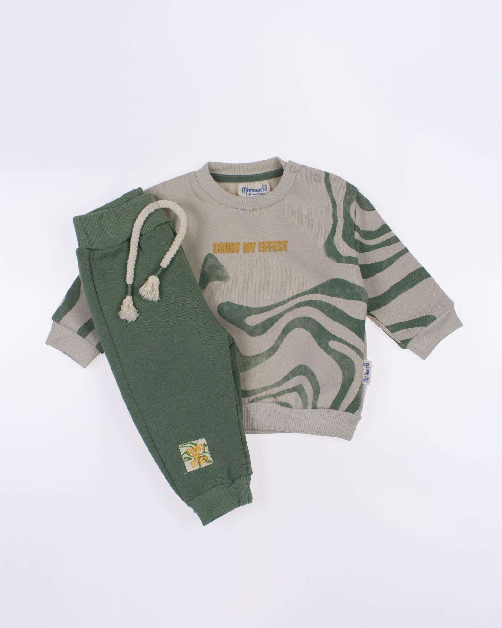 Мы предлагаем оптовые продажи детской одежды производства Турция. Хлопковый костюм MINIWORLD выполнен из хлопка с начесом , что гарантирует комфорт и безопасность для самых маленьких детей. Свитшот имеет удобную застежку-кнопки на плече, что облегчит процесс надевания и снятия одежды. Штанишки с мягкими манжетами на эластичном поясе идеально подходят для ношения с подгузником, обеспечивая свободу движений и комфорт. Детский милый принт на костюме поможет развить фантазию и воображение ребенка, делая его образ ярким и запоминающимся. Костюм MINIWORLD - отличный выбор для маленьких модников и их заботливых родителей. Не упустите возможность приобрести этот уникальный товар оптом по выгодной цене!