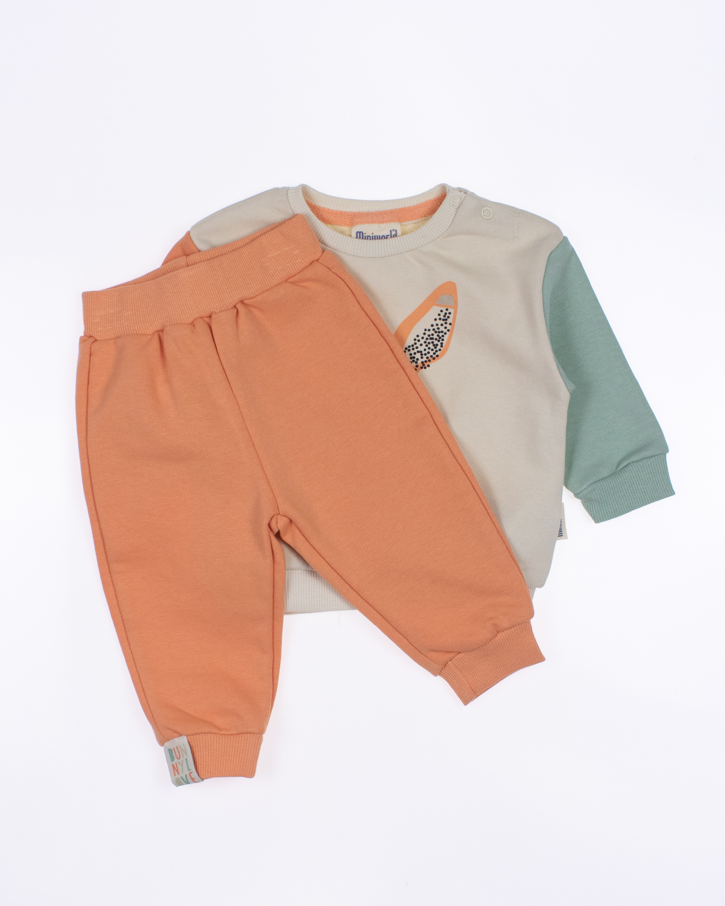Наша компания предлагает детские костюмы MINIWORLD оптом, которые производятся в Турции. Костюм изготовлен из натурального хлопка и имеет уникальную расцветку. Кофточка имеет оригинайльный крой.  Штанишки  умеренного объема, внизу штанин есть манжеты, которые помогают фиксировать их на месте. Это не только обеспечивает удобство движения, но и предотвращает скатывание штанин. Детский костюм оптом из Турции - это отличное предложение для магазинов и розничных покупателей, которые ценят качество, комфорт и натуральные материалы. Костюм выполнен из трикотажа футер (петля).